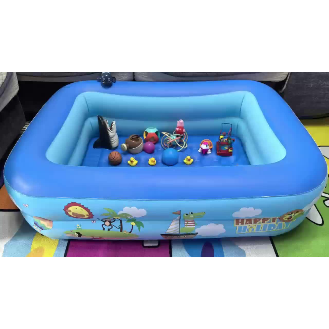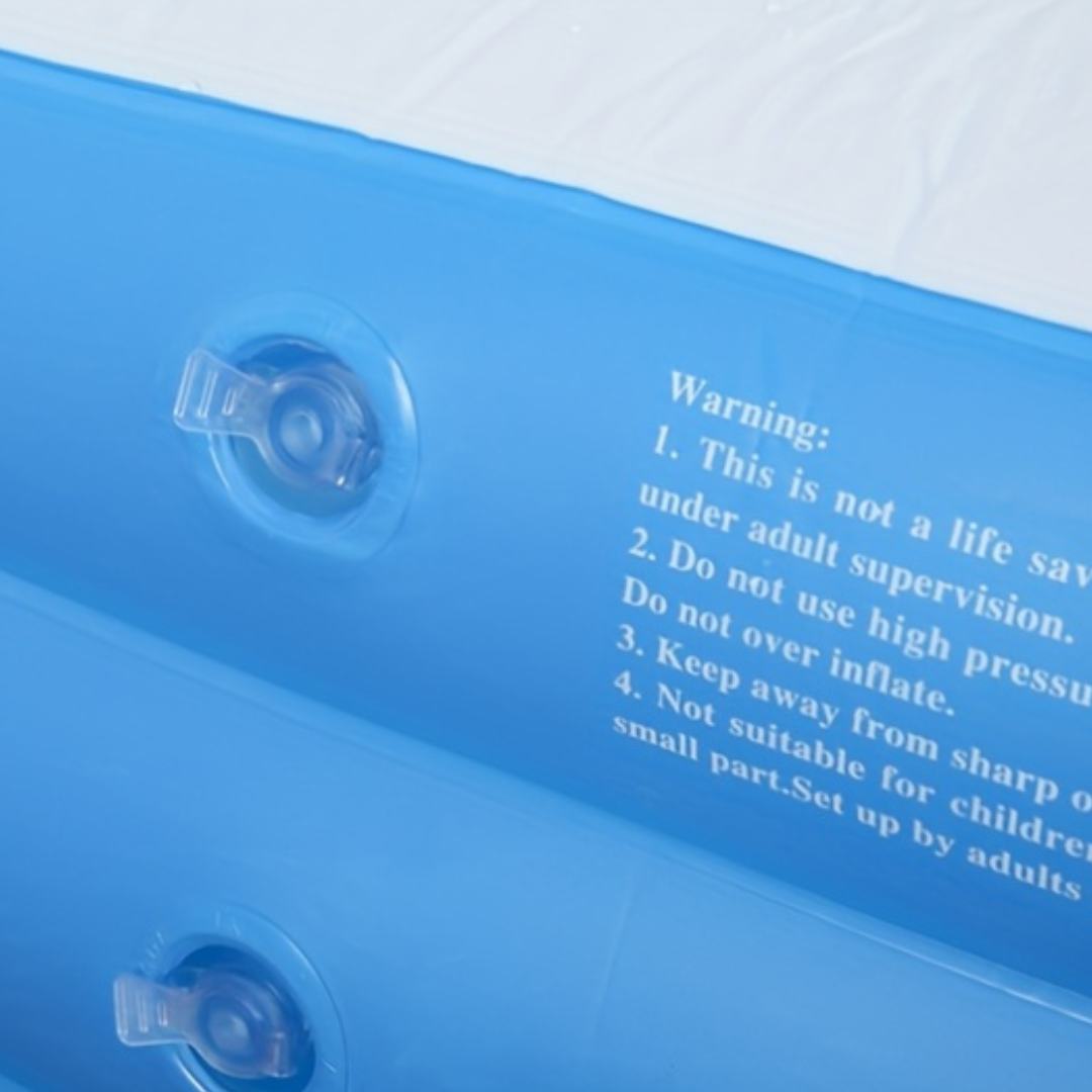 Ta med timmar av utomhusvattenlek till din trädgård med denna uppblåsbara familjepool. Tillverkad av starkt PVC-material, är denna blå fyrkantiga pool perfekt för barn från 6 månaders ålder och uppåt. Lätt att sätta upp och säker att använda, är den idealisk för familjesammankomster, fester eller avkopplande sommardagar.