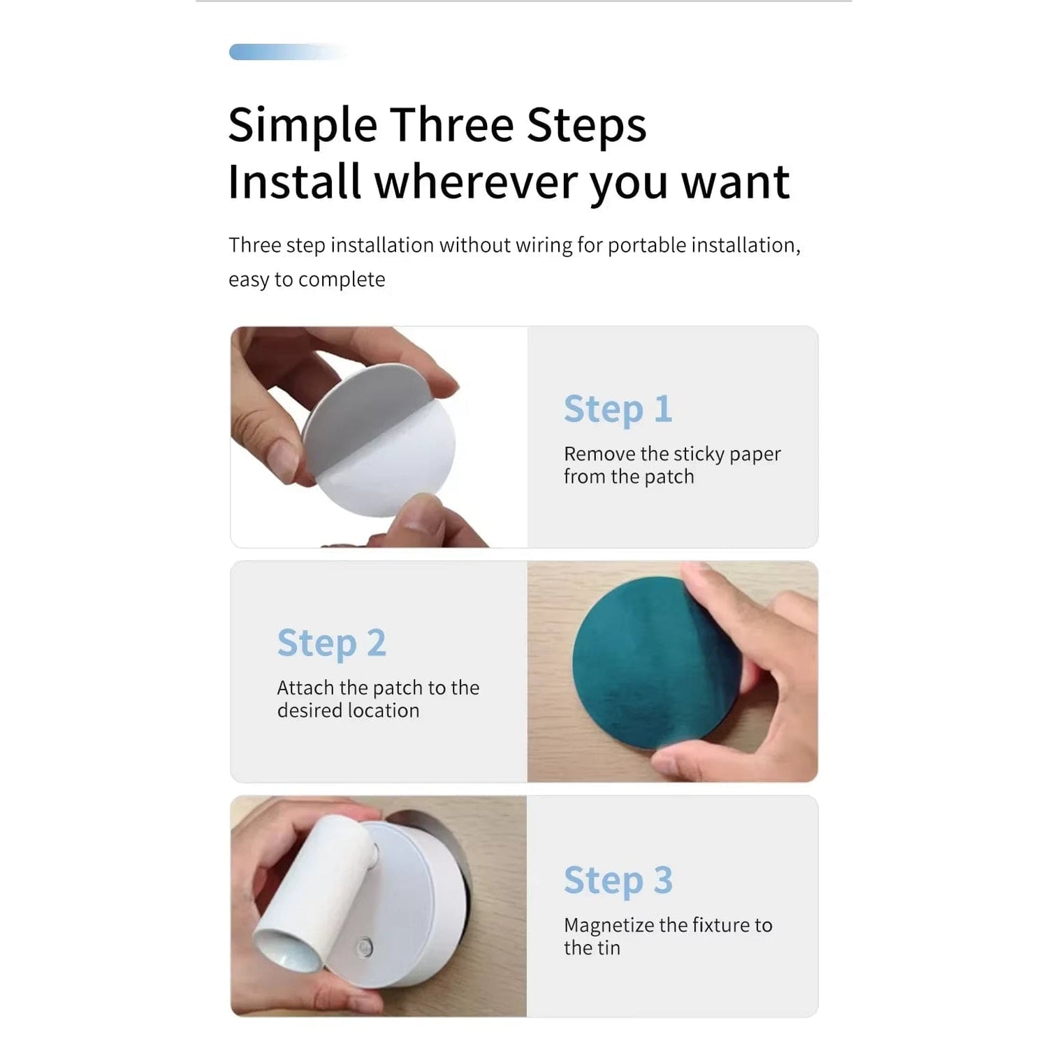 - Magnetiskt Fäste: Trådlös installation med en magnetisk platta möjliggör enkel placering och borttagning, vilket ger mångsidighet i din belysningsuppsättning.