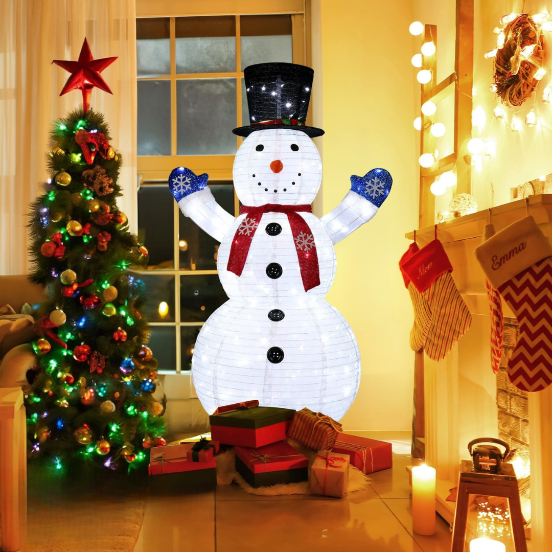 Ljusa upp din trädgård denna julperiod med vår charmiga utomhus LED snögubbe lampa dekoration. Designad för vinterväder, denna belysta jul snögubbe ger ett varmt och magiskt sken till din framsida. Dess hopfällbara design, hållbara material och festliga utseende gör den till en måste-ha för att skapa en mysig julatmosfär utanför ditt hem.