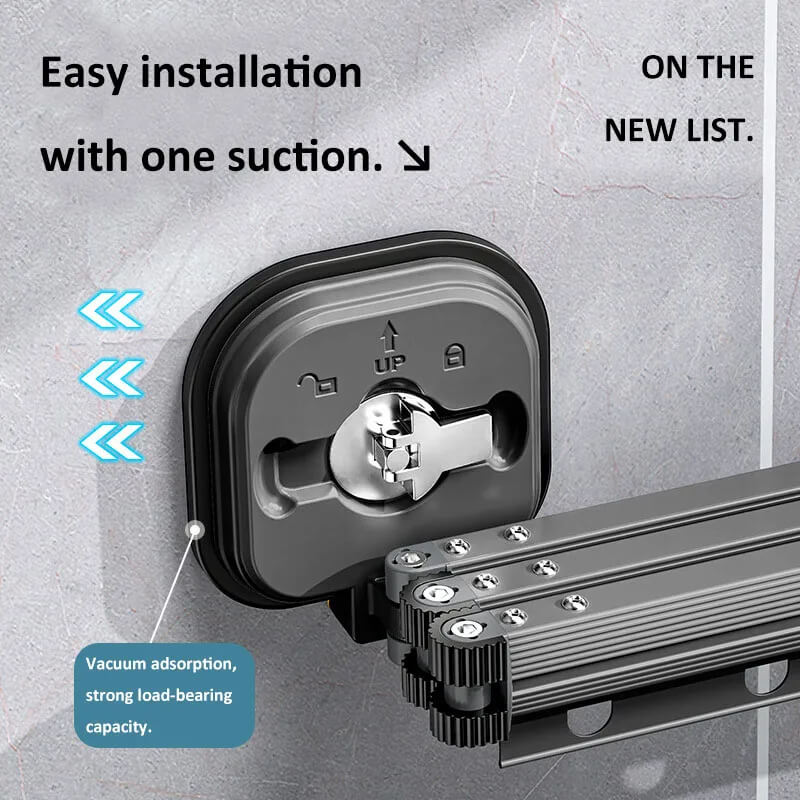 DryFold - Hopfällbart Väggmonterat Torkställ med Sugkoppar för Platsbesparing